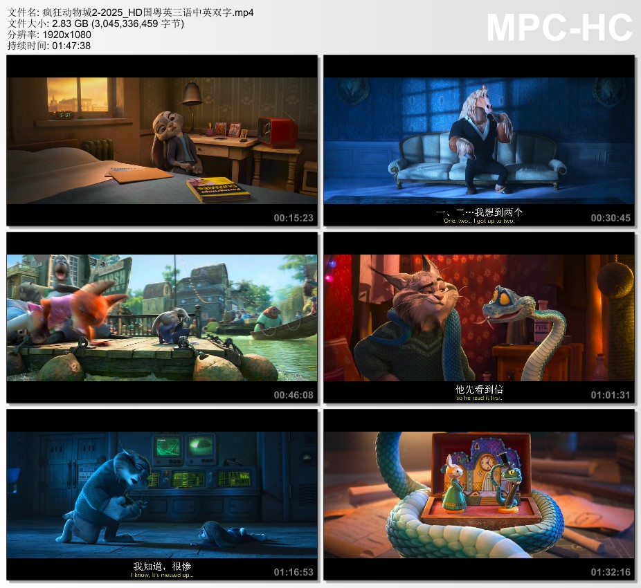 2025年美国8.4分动画片《疯狂动物城2》HD国粤英三语中英双字