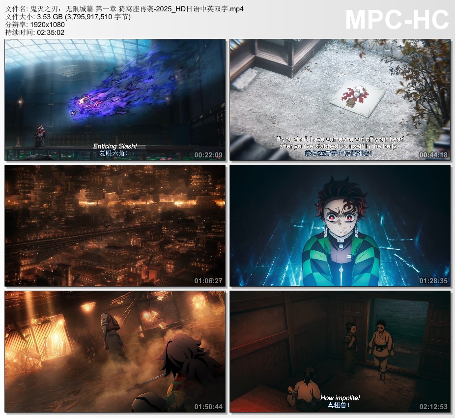 2025年日本动画片《鬼灭之刃:无限城篇 第一章 猗窝座再袭》HD日语中英双字