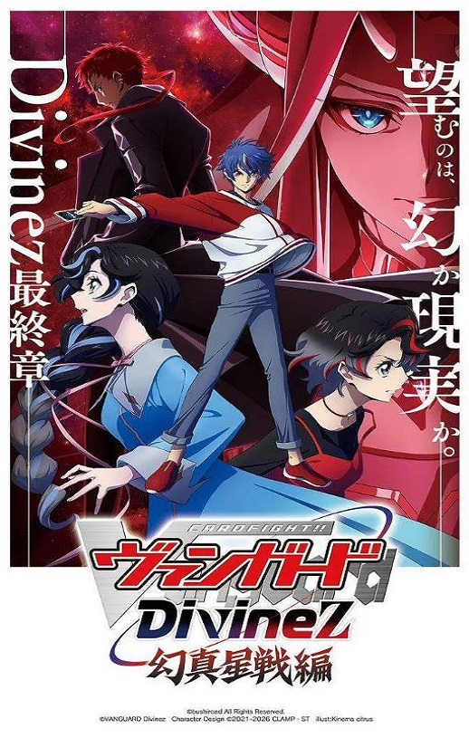 作为10週年纪念作品播出的电视动画“D系列”,自2024年01月起,《卡片战斗!! 先导者 Divinez》正式播出。而其最终章──“幻真星战篇”终于揭开序幕! 在明那等人居住的加贺国金泽,观测到了异常现象。被浓雾笼罩的街道、耸立于空的高塔──那是幻之世界。赤红之月升起的夜晚,他们将化为“幻影”。是要抹消幻象,还是让真实被其取代?为了夺回世界,明那最后的战斗,就此拉开序幕!