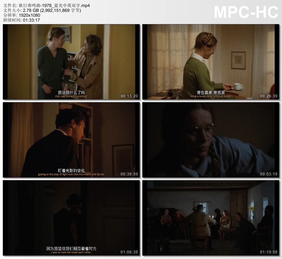1978年瑞典电影《秋日奏鸣曲》蓝光中英双字